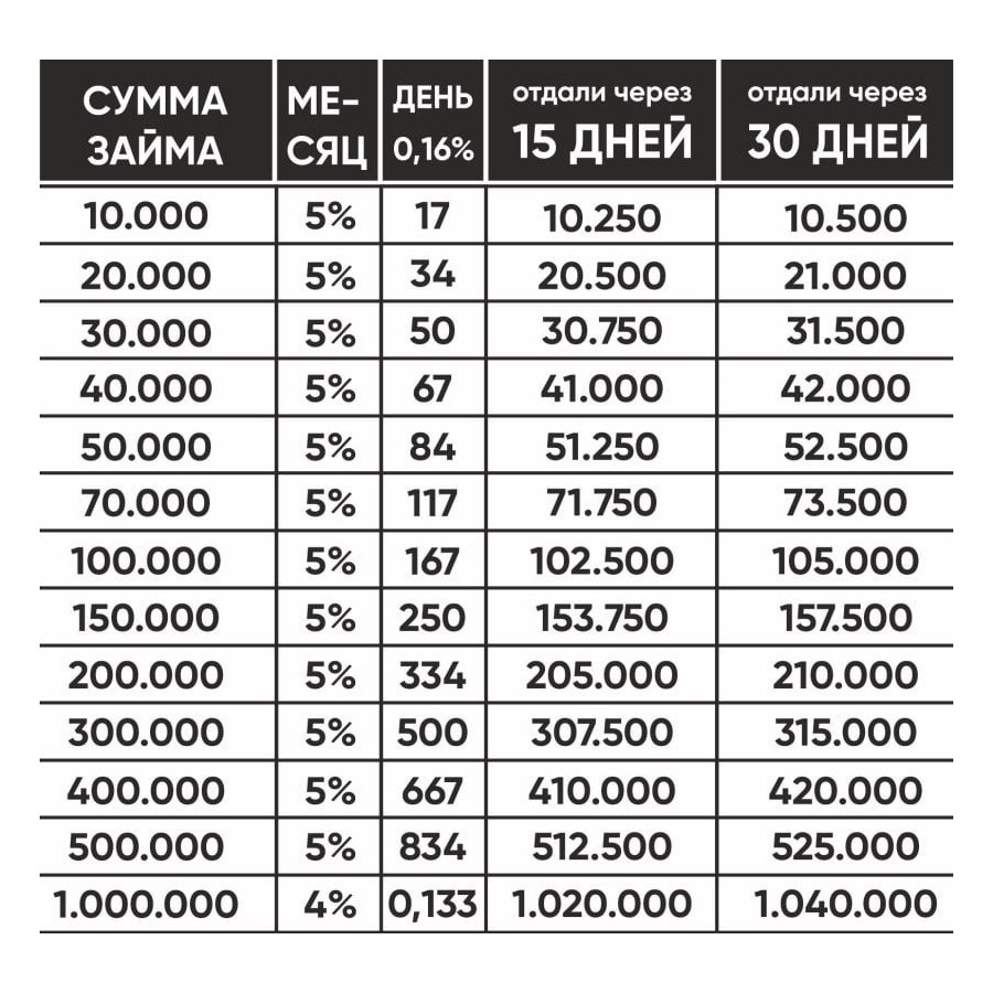 Тарифы нашего ломбарда